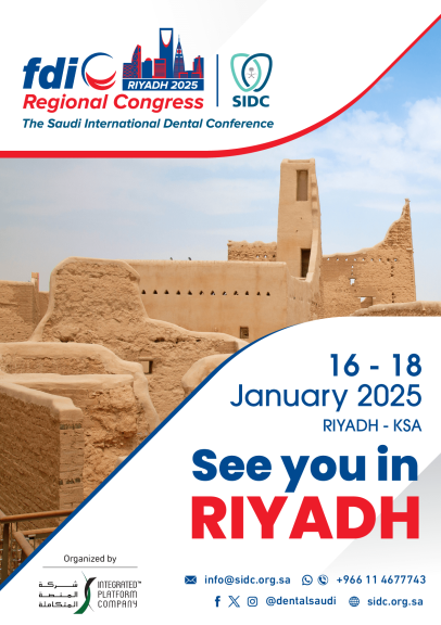 We're delighted to announce the upcoming FDI Regional Congress-SIDC 2025, scheduled from January 16th to 18th, 2025, in the captivating city of Riyadh, Kingdom of Saudi Arabia. It is with great excitement that we share our inaugural venture into the Middle East through this collaboration with our member, the Saudi Dental Society.